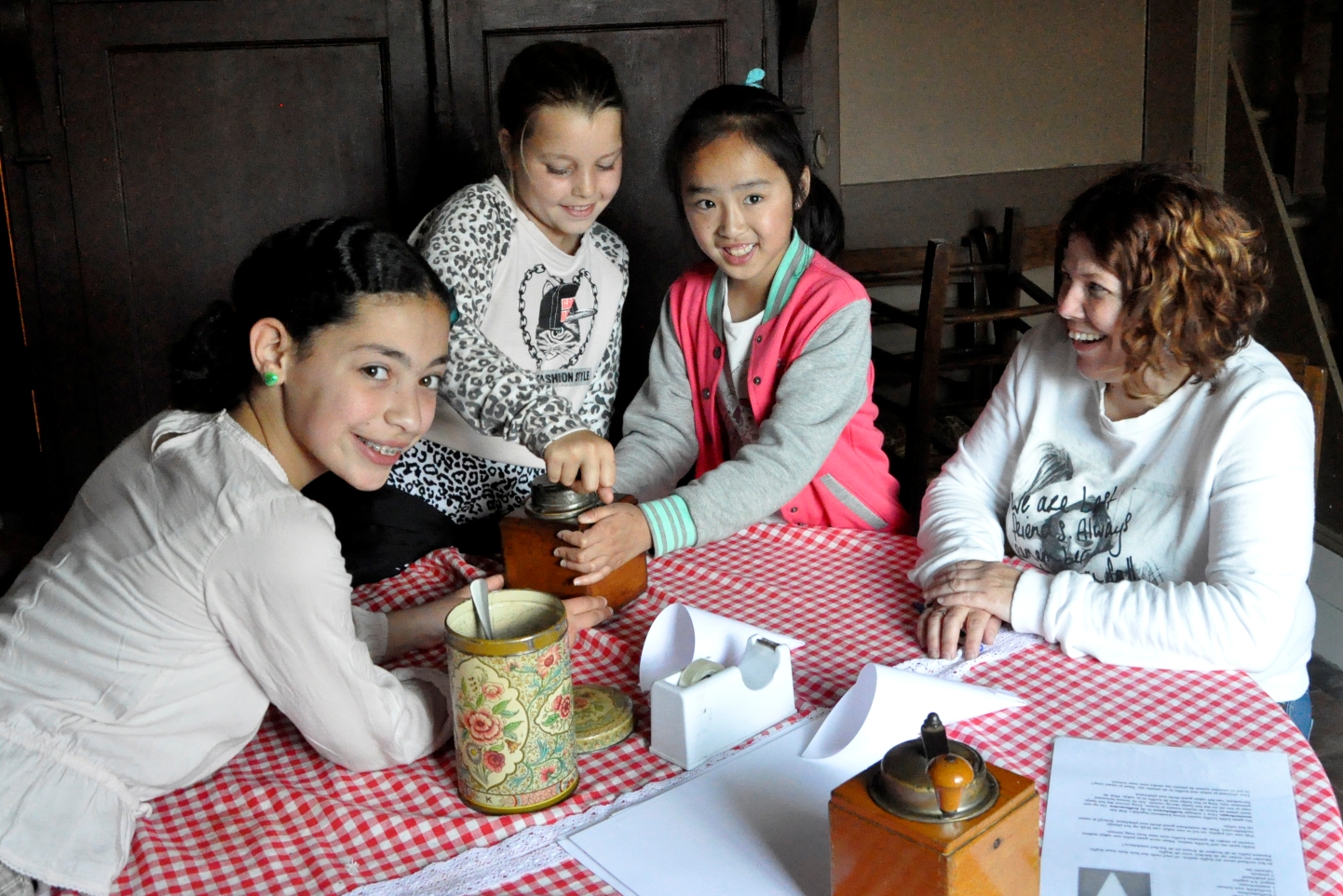 Na de ontvangst in het cafeetje van het museum, waar nog eens ingegaan wordt op het geleerde op school en wat een museum nu eigenlijk is, gaan de kinderen zes activiteiten uitvoeren die voor Jet en Jan 100 jaar geleden heel gewoon waren: